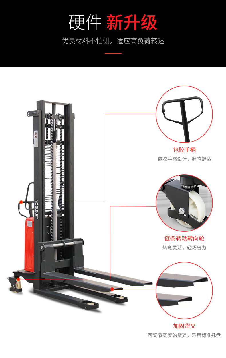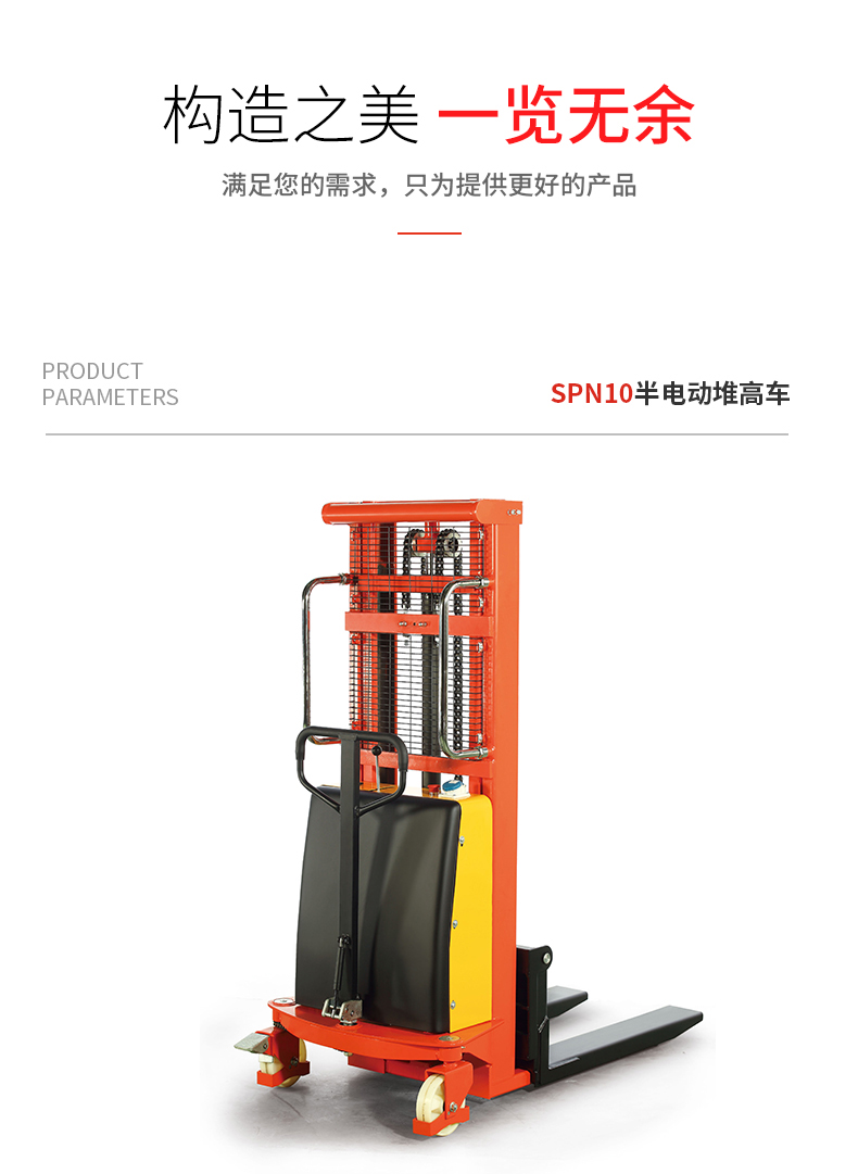 SPN系列半動堆高車式段距離搬運不行車輛,郵箱載荷可達1000kg/1500kg,提升高度最大可達3500mm。特別適合在位置收到限制的使用場合,尤其在窄巷道中表現(xiàn)更為出色